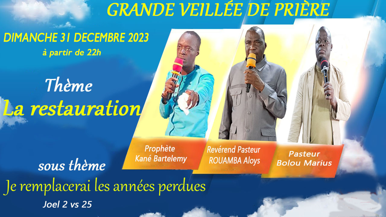 Dimanche 31 décembre 2023 - Grande prière à la mission Pentecôtiste de Jésus Christ pour le passage de 2023 à 2024